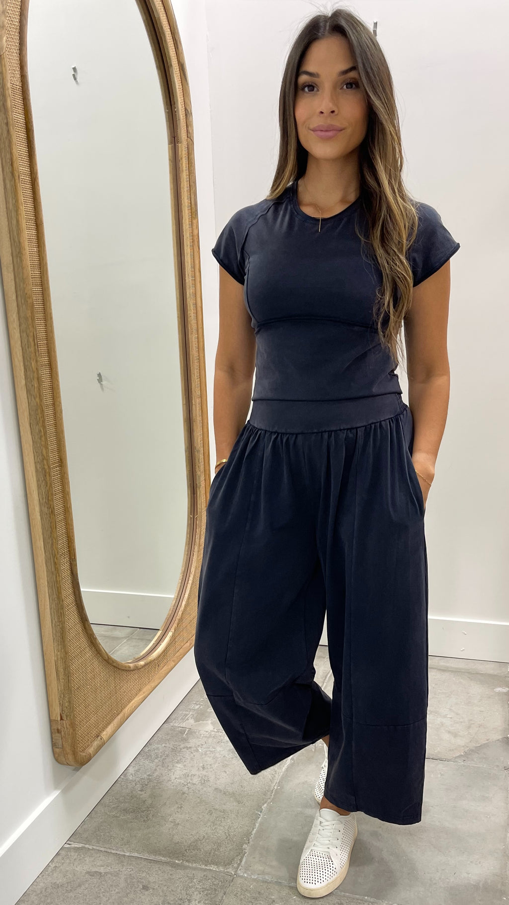 These Khloe Baggy Mineral Washed Pants feature a wide smocked waistband and exaggerated gathered pleats, creating a flattering and comfortable fit. Subtle seam paneling along the legs enhances their relaxed wide-leg silhouette, perfect for an effortlessly stylish, laid-back look. Ideal for all-day wear, these pants combine comfort with a trendy edge.