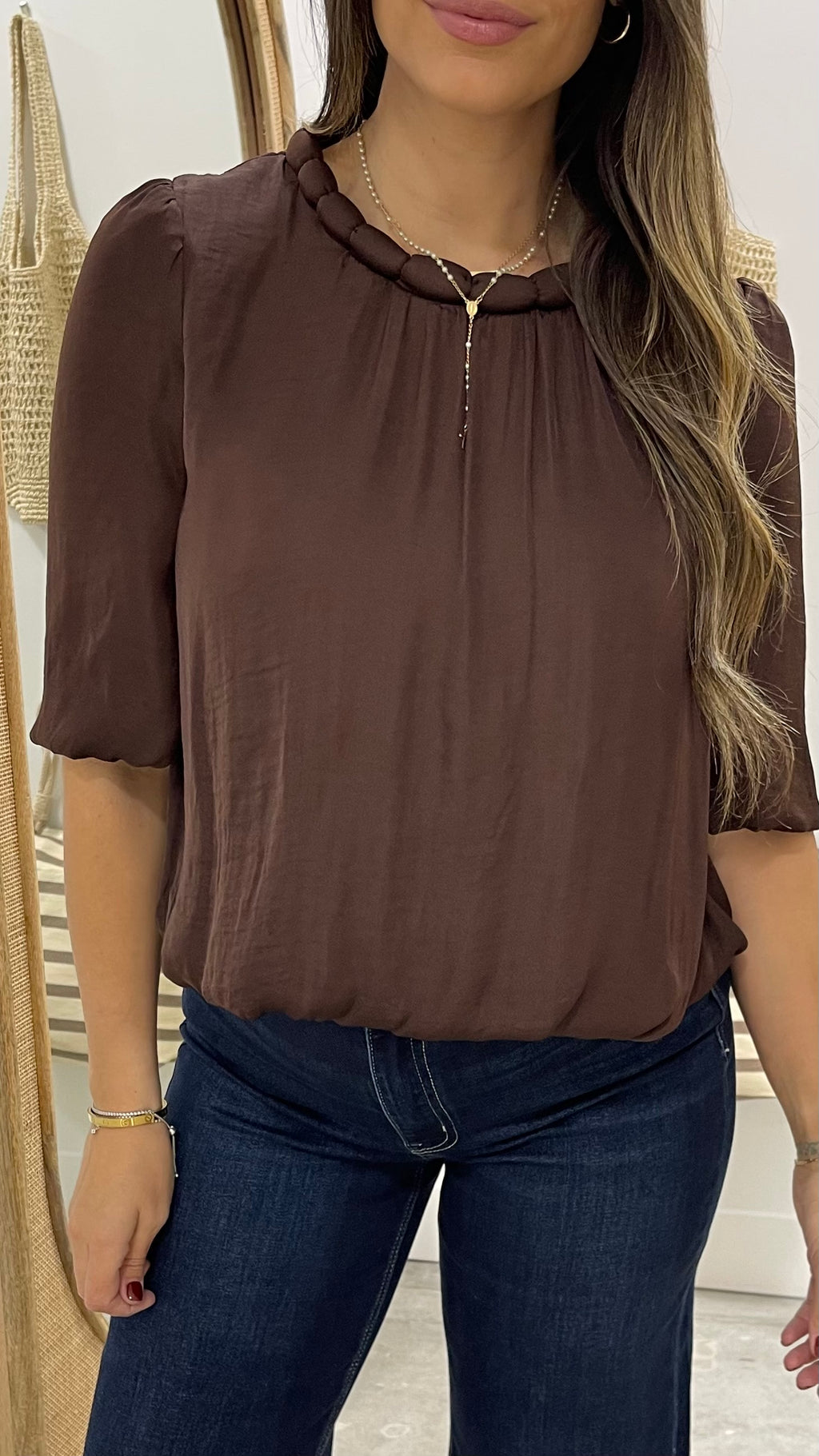 The Mayren Classy Blouse is this season's must-have piece, designed for effortless versatility. Crafted from lightweight woven polyester and fully lined, it drapes beautifully whether you're heading to the office or an evening out. The signature round neckline features an elegant ball detail accent, while half sleeves with a charming bubble hem and back keyhole closure add sophisticated dimension. Tuck it into tailored trousers for polished workwear, or pair it with denim for an elevated casual look. Hand wash cold to maintain its impeccable finish.