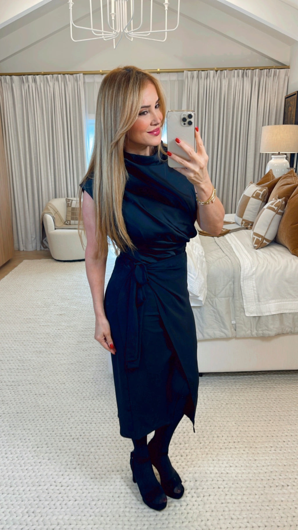 Elevate your wardrobe with the Noelle Black Midi Skirt, a versatile essential that transitions seamlessly from work days to evening events. The flattering wrap-around closure creates a customizable fit, while the comfortable elastic waistband ensures all-day comfort without compromise. Whether you're powering through a word day or stepping out for a night on the town, this timeless black midi delivers effortless style and confidence for any occasion.