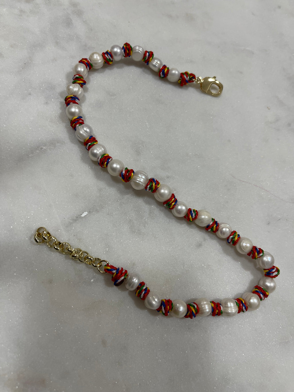 Freshwater Pearls & Knot Necklace Red